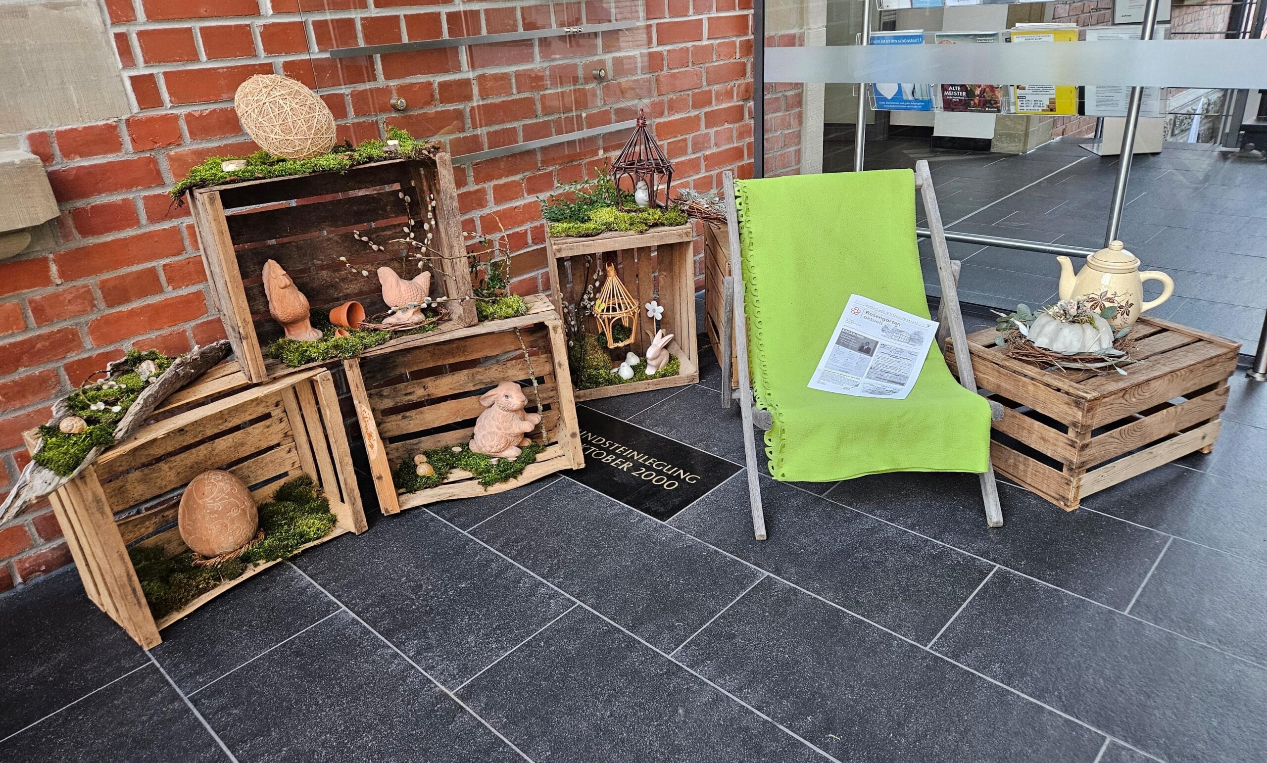 Wir durften wie jedes Jahr wieder das Foyer unseres Rosengartener Rathaus österlich dekorieren. Unser Dekoteam hat sich wieder große Mühe gegeben ein tolles Arrangement zusammen zu stellen.